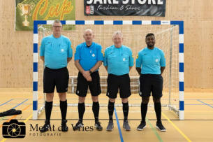 scheidsrechters coach AV in de zaal. Door meer coaching zaal besloten om zaterdag het veld weer op te gaan in